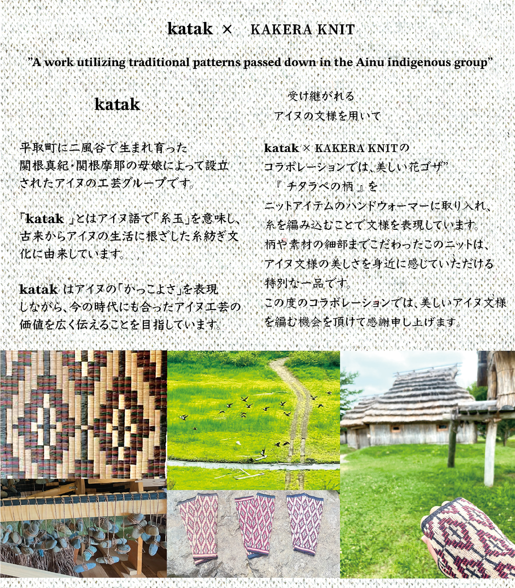 カケラニットは、オリジナル柄や編み旅で出逢った伝統的な柄を用いて編みという技法で表現しております。祖先の知恵や自然のモチーフに敬意を払いながら、旅で出逢ったり、自ら創り出したりした無限の柄や素材を、私は「カケラ」と呼んでいます。そのカケラたちを1つの横編み機を用いて編みという技法で描き、一点ものや限定の手衣(てごろも)を中心に糸から制作しております。デザインは細かな柄と素材と色が特徴で、主にウール、時に麻、絹、カシミアなど色んな素材にも挑戦しています。日本、世界問わず訪れた場所から華麗、美しい、かわいいなど、カケラニットに身を包んで頂いたり、そこから多国、多色の文化に触れて頂いたり、人や自然、日常にやさしいアイテムをこれからも編んでいけたら、たいへん嬉しく思います。